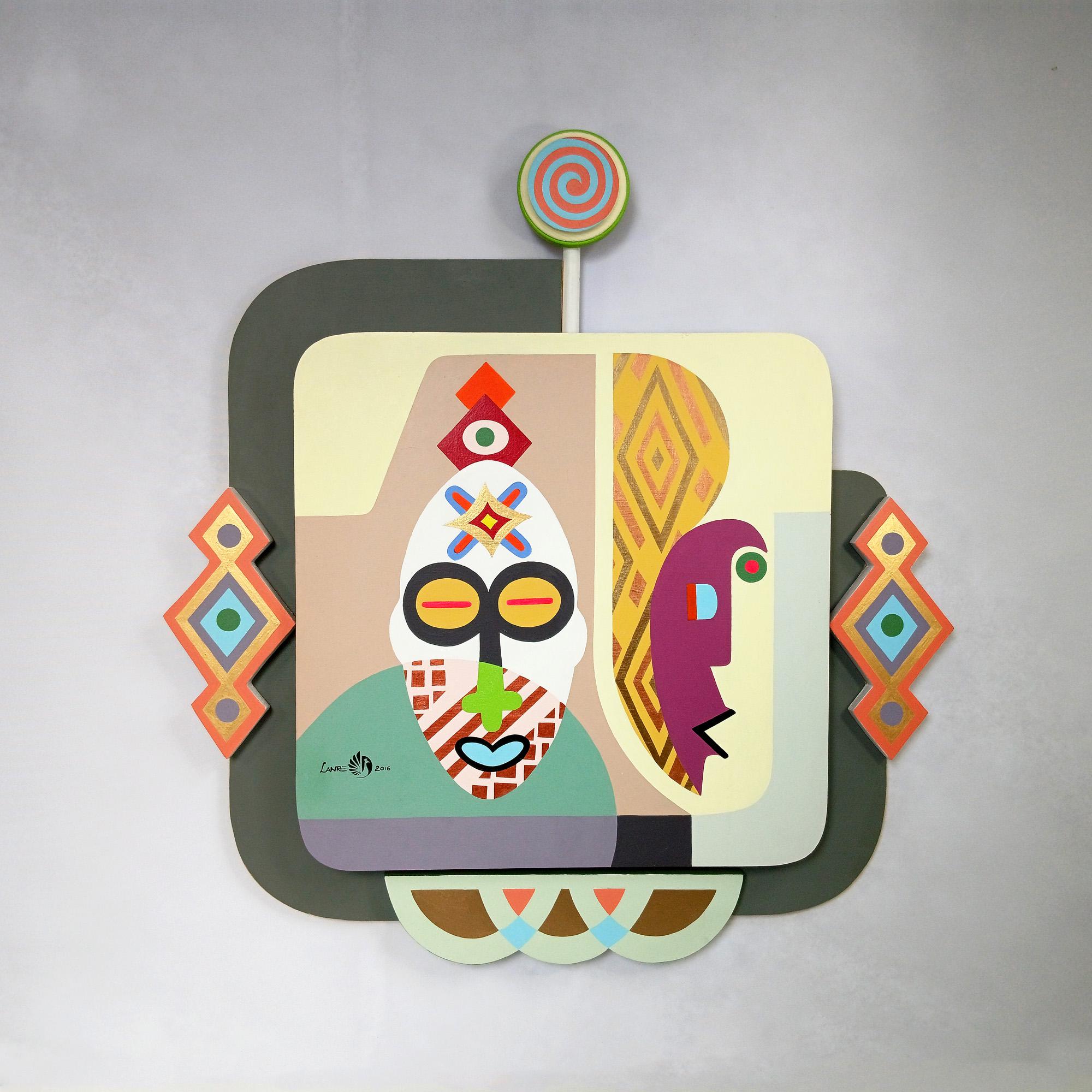 African Mask Acrylic Painting on Wood: Cubist Pop Art, Tribal Symbolism