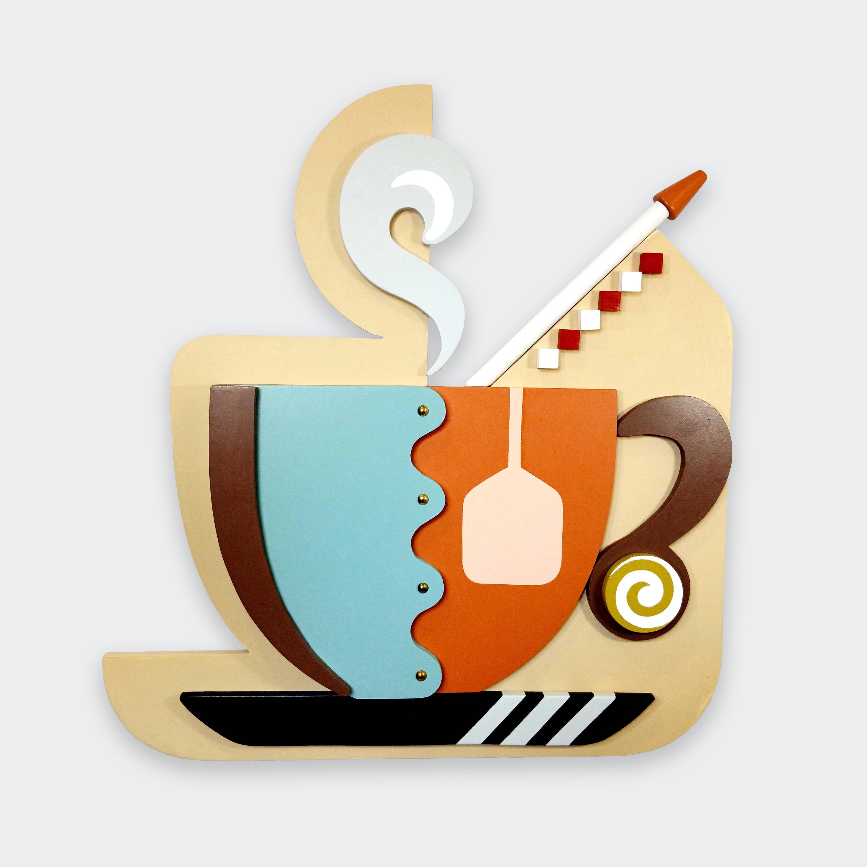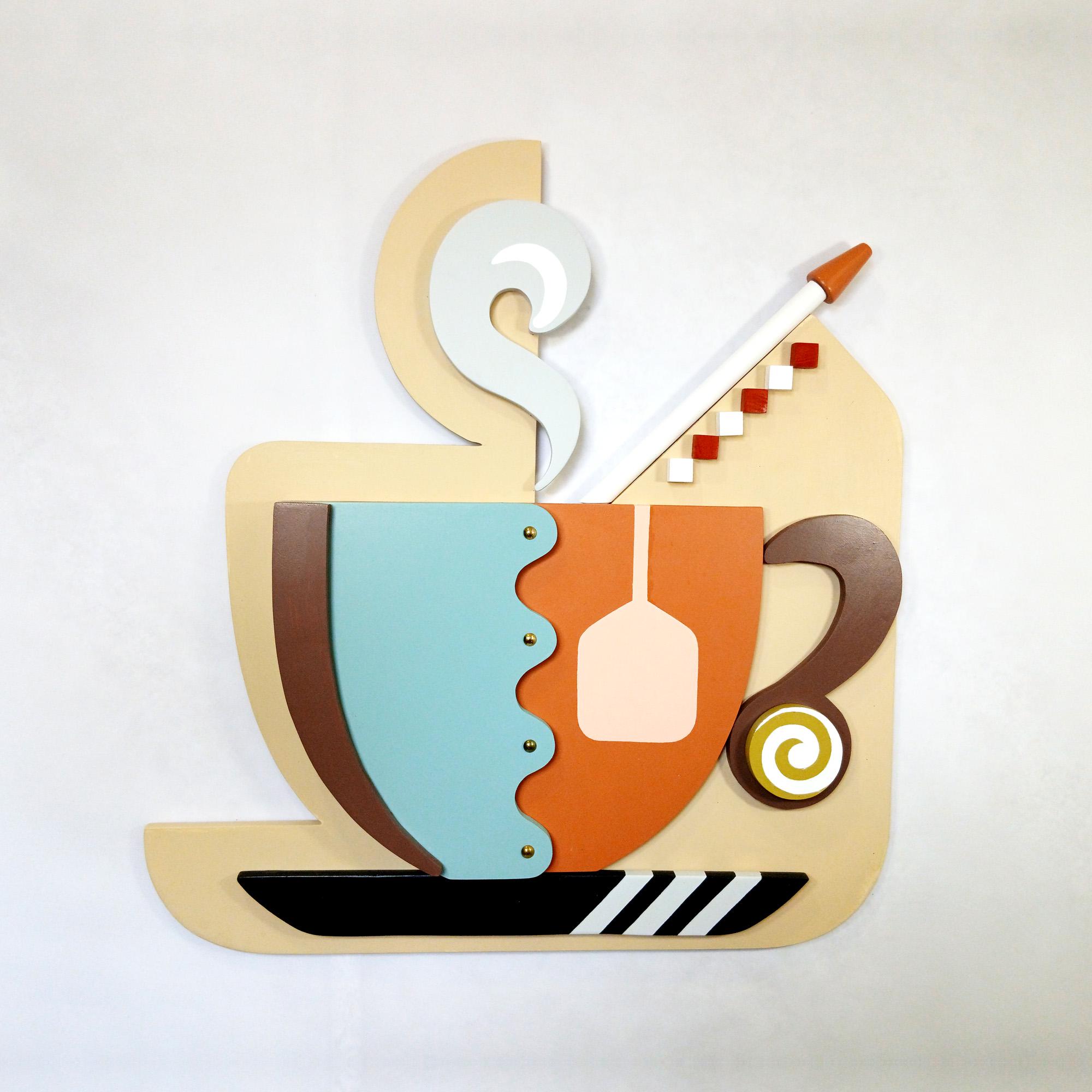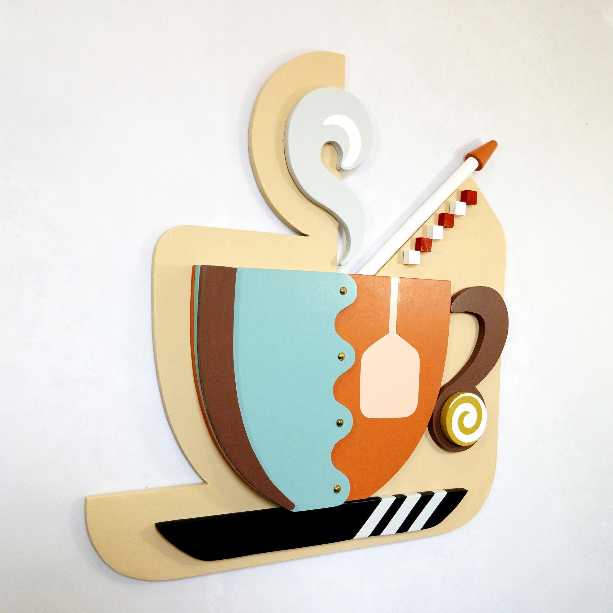 Abstract Wooden Wall Sculpture: Cubist Tea Cup Art Modern Geometric Wall Decor