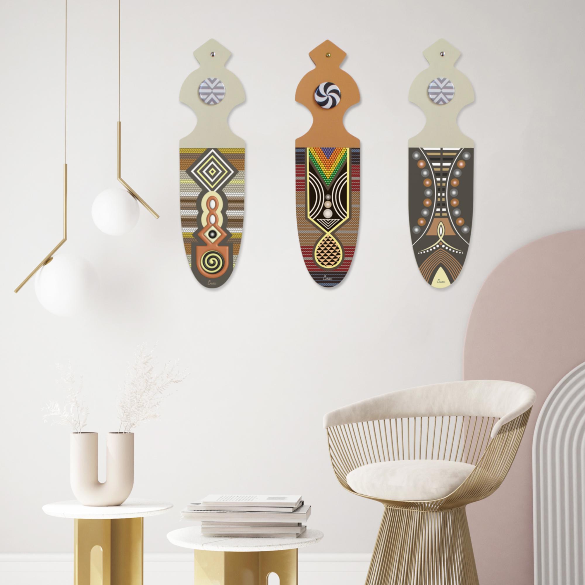 Afrocentric Wooden Wall Art: Warm Earth Tones Geometric Tribal Modern Décor