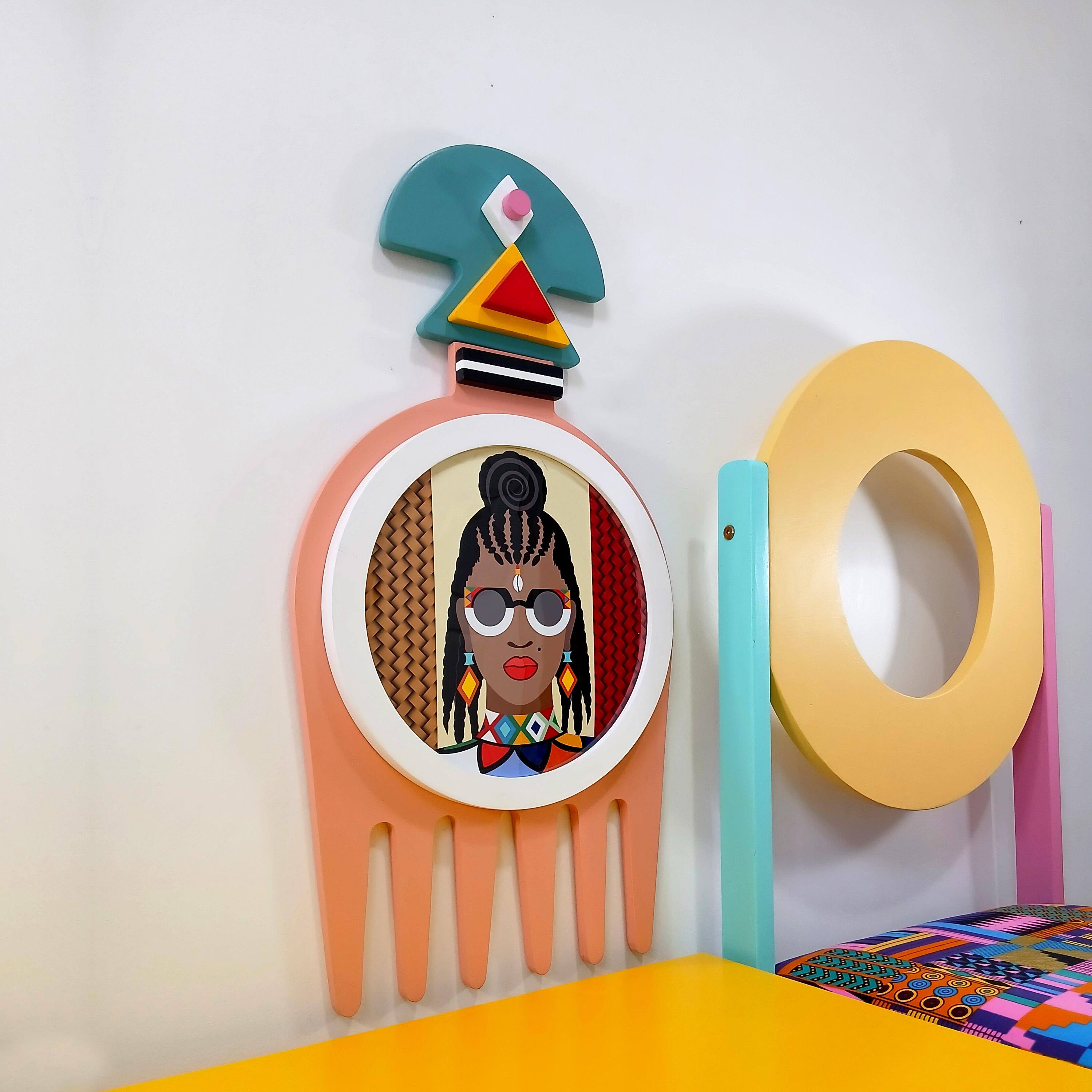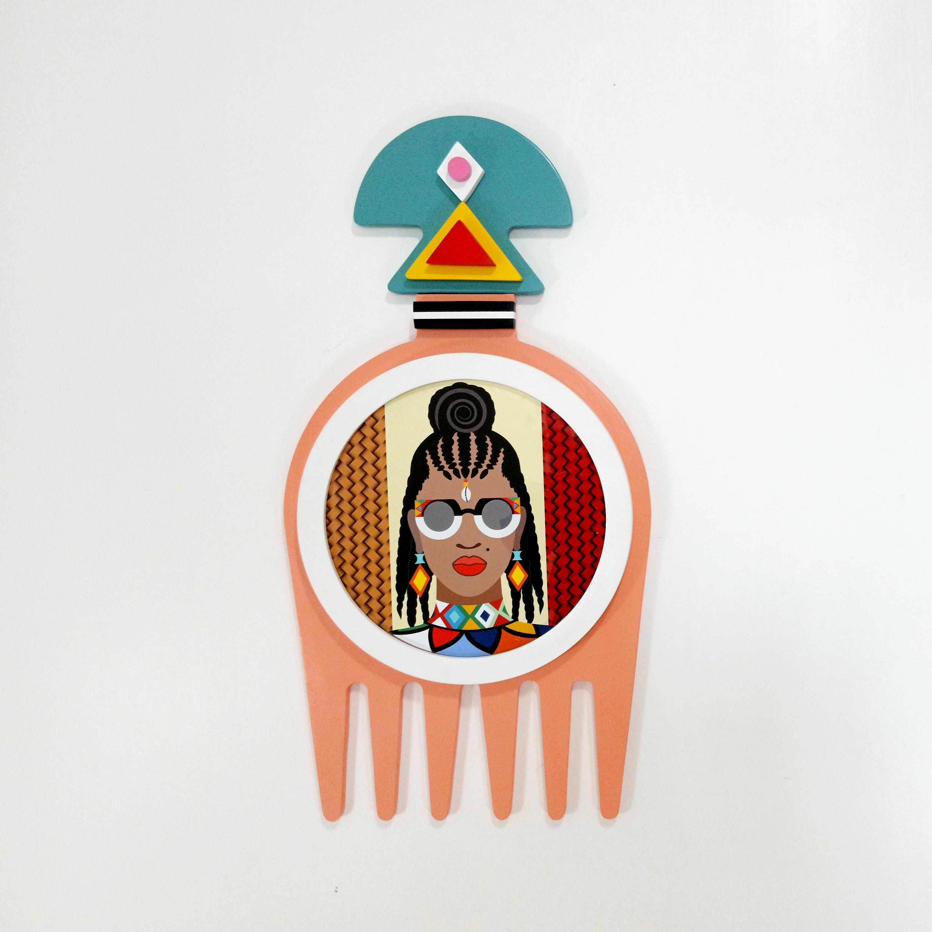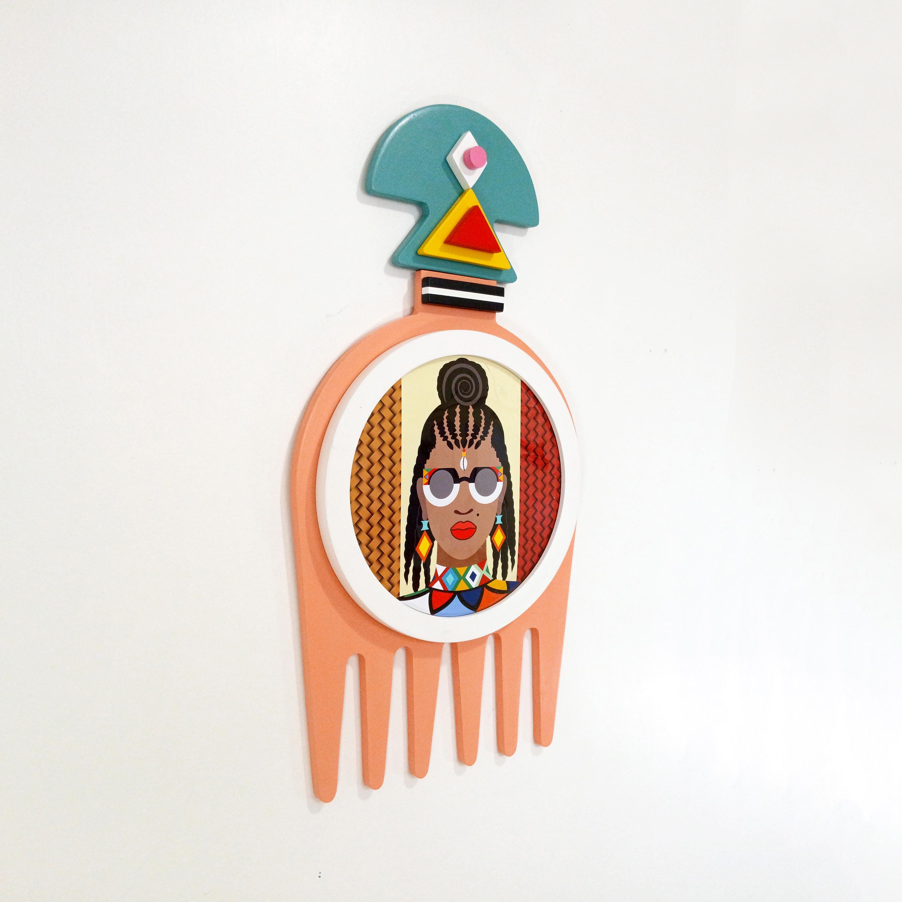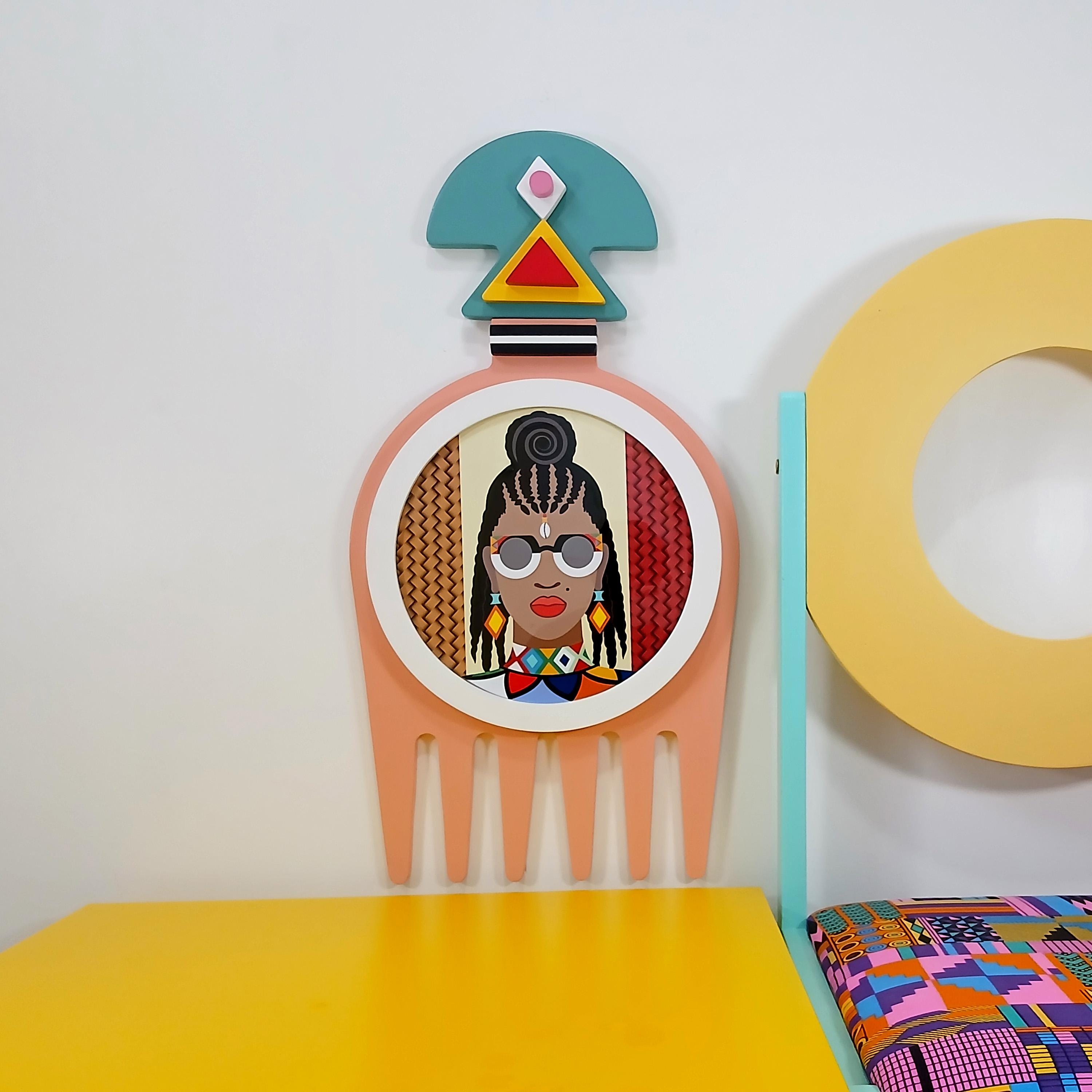 Black Woman Decor: Afro Pick Duafe Adinkra Afrocentric Home Accent Wooden Sculpture