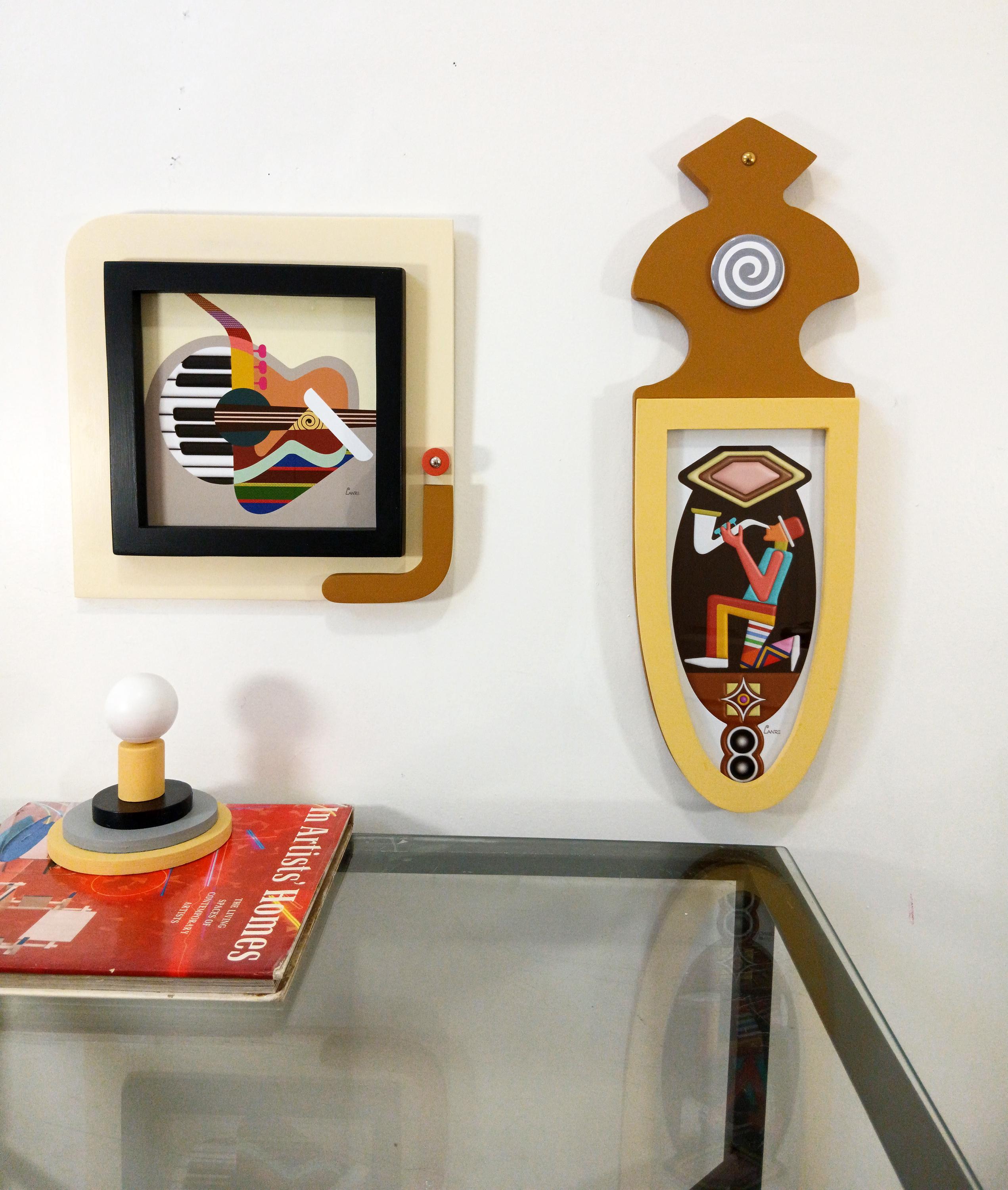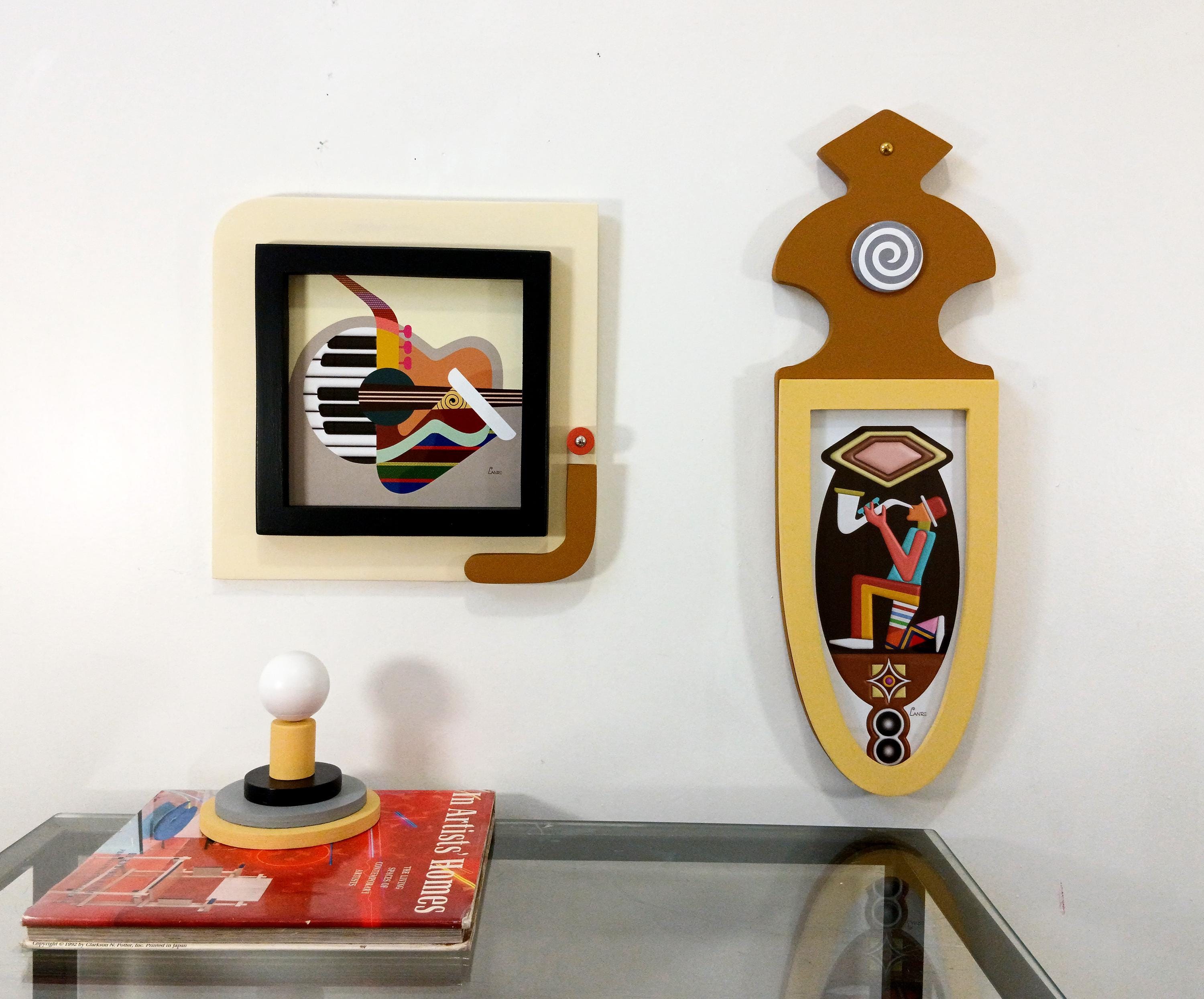 vibrant abstract cubist pop art wooden wall sculpture,