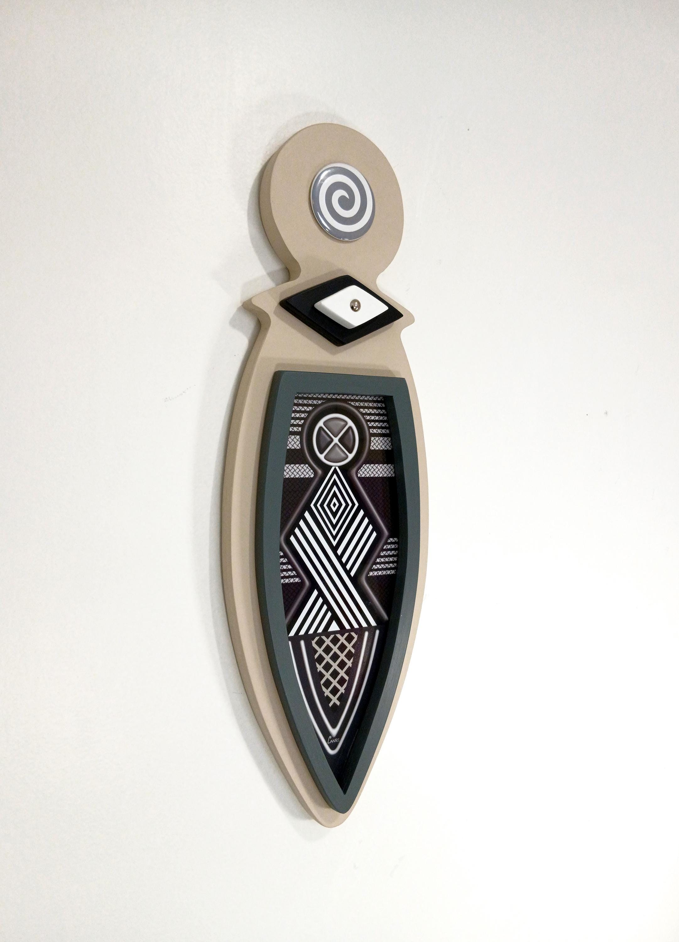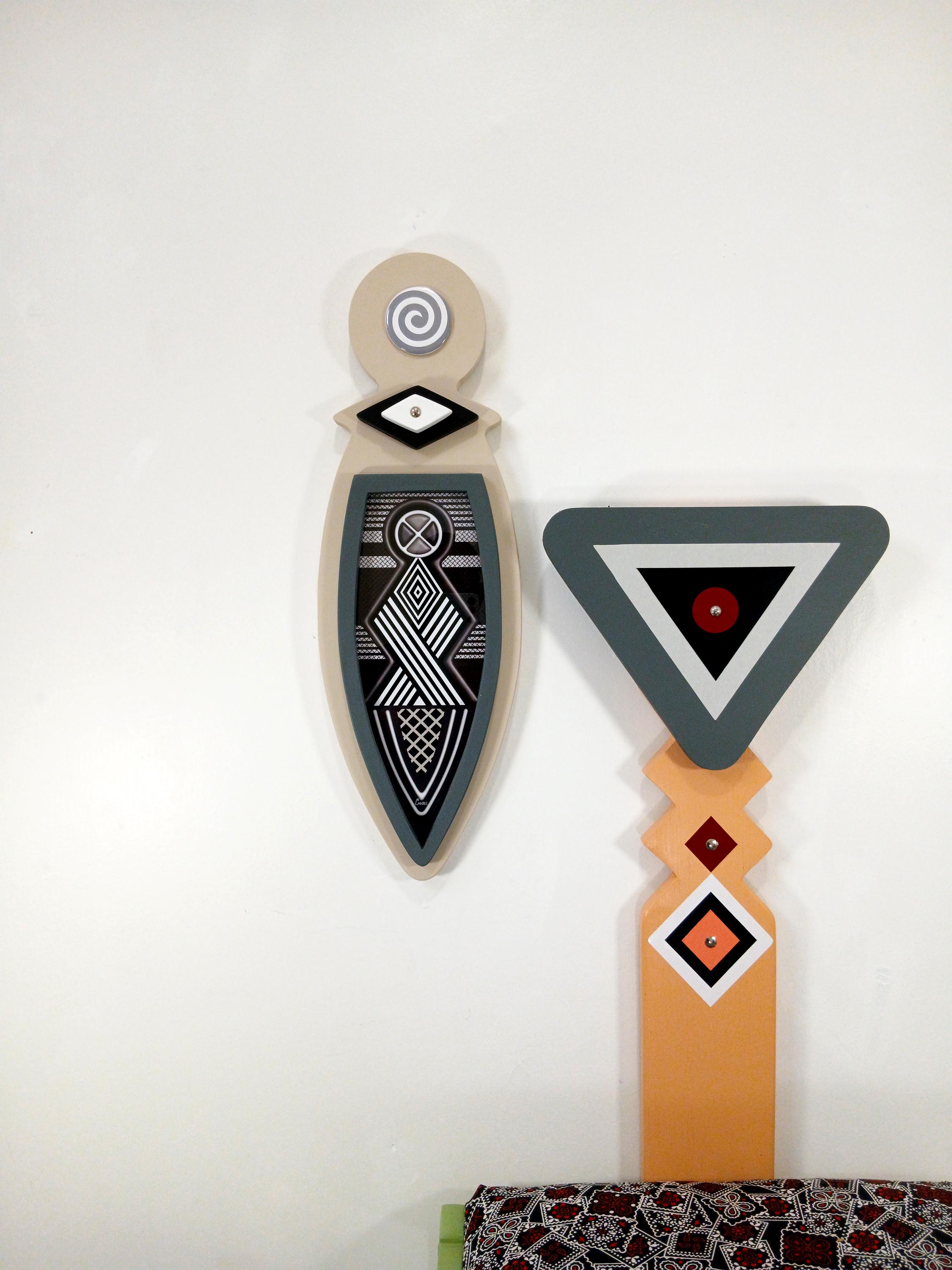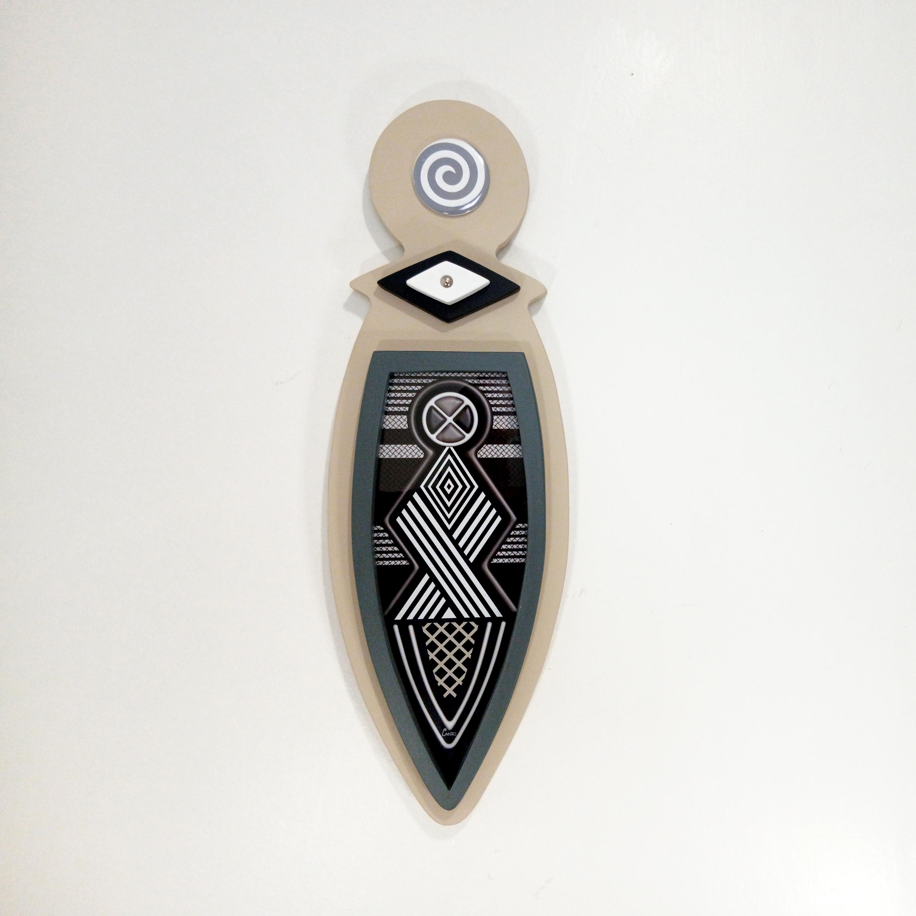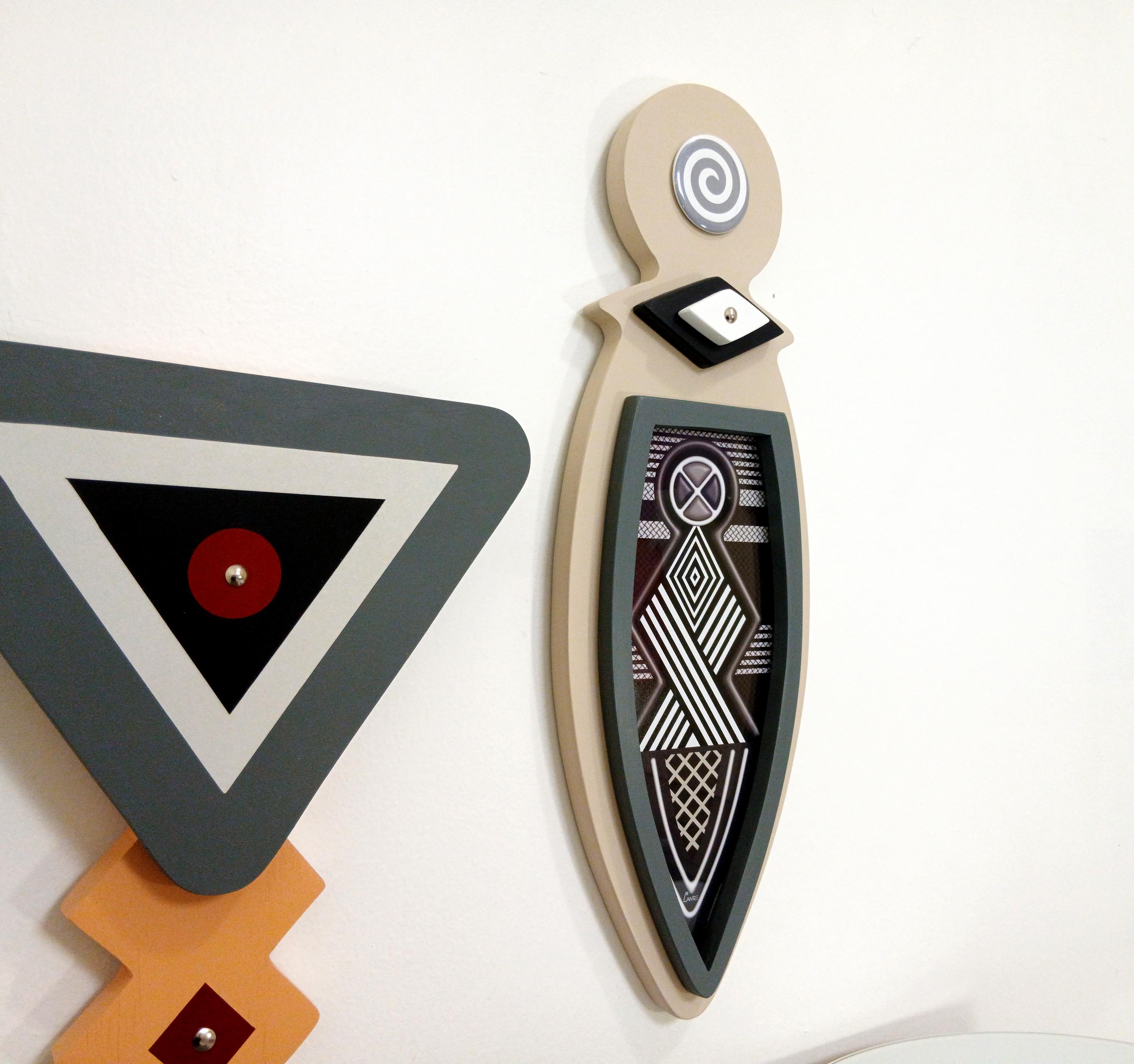 This artwork blends traditional Afrocentric geometry