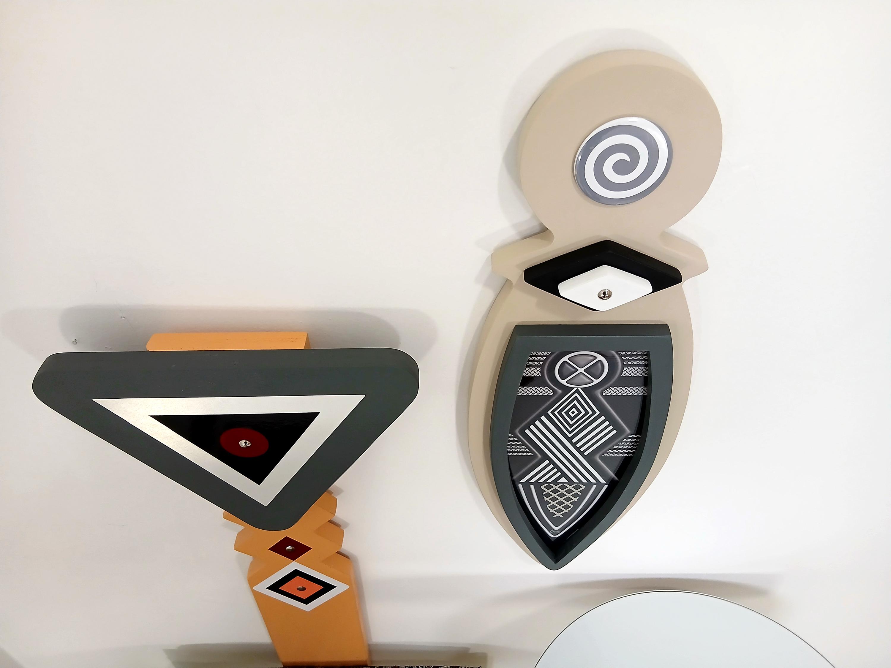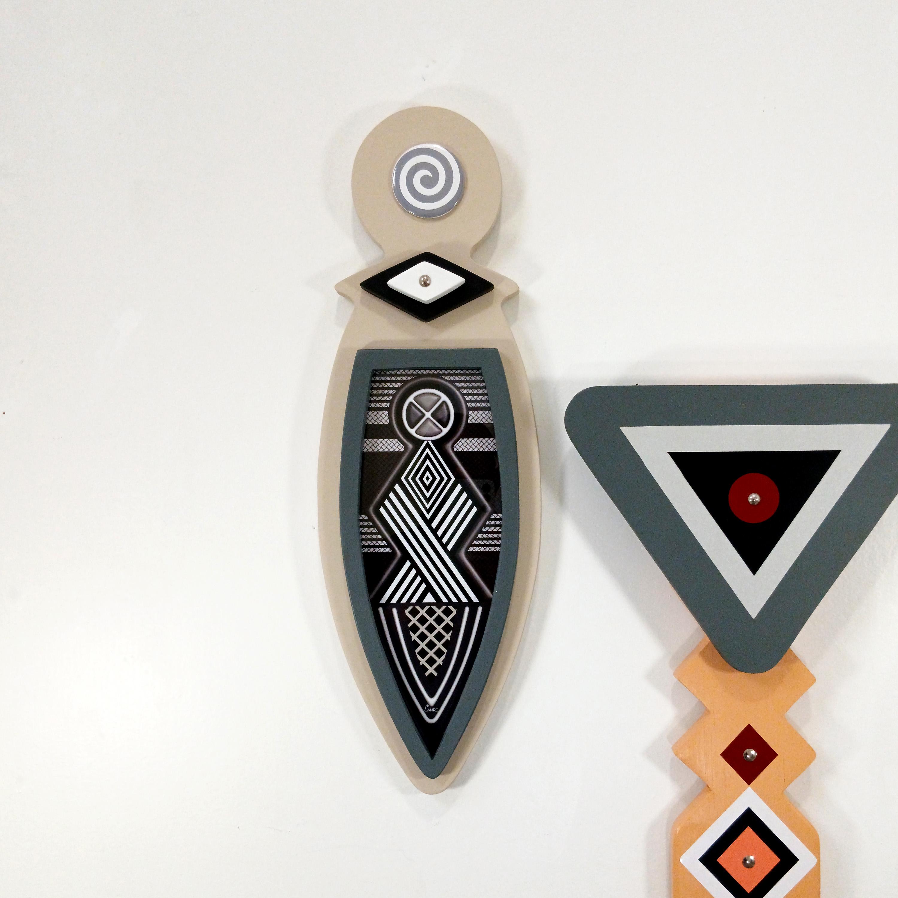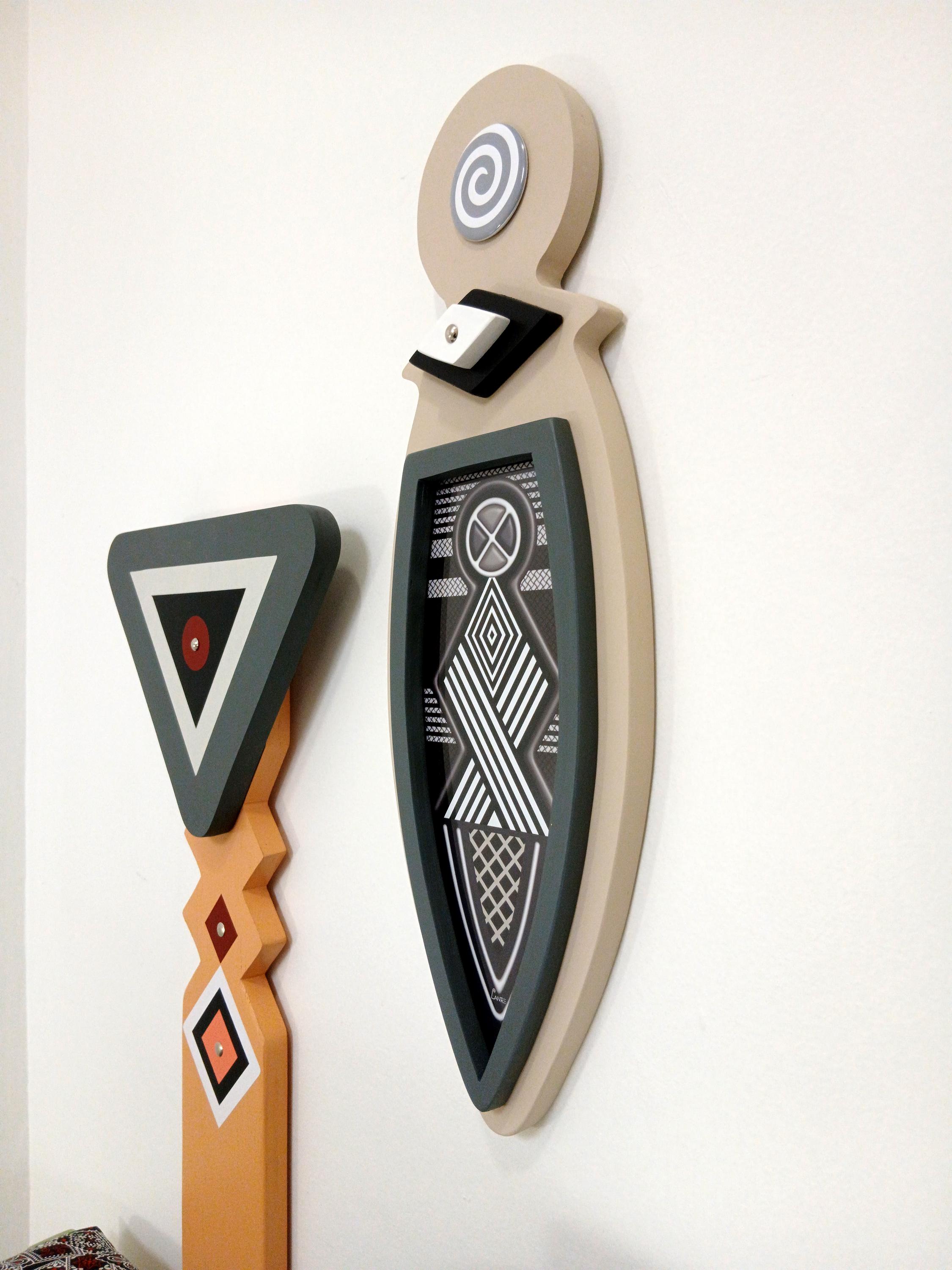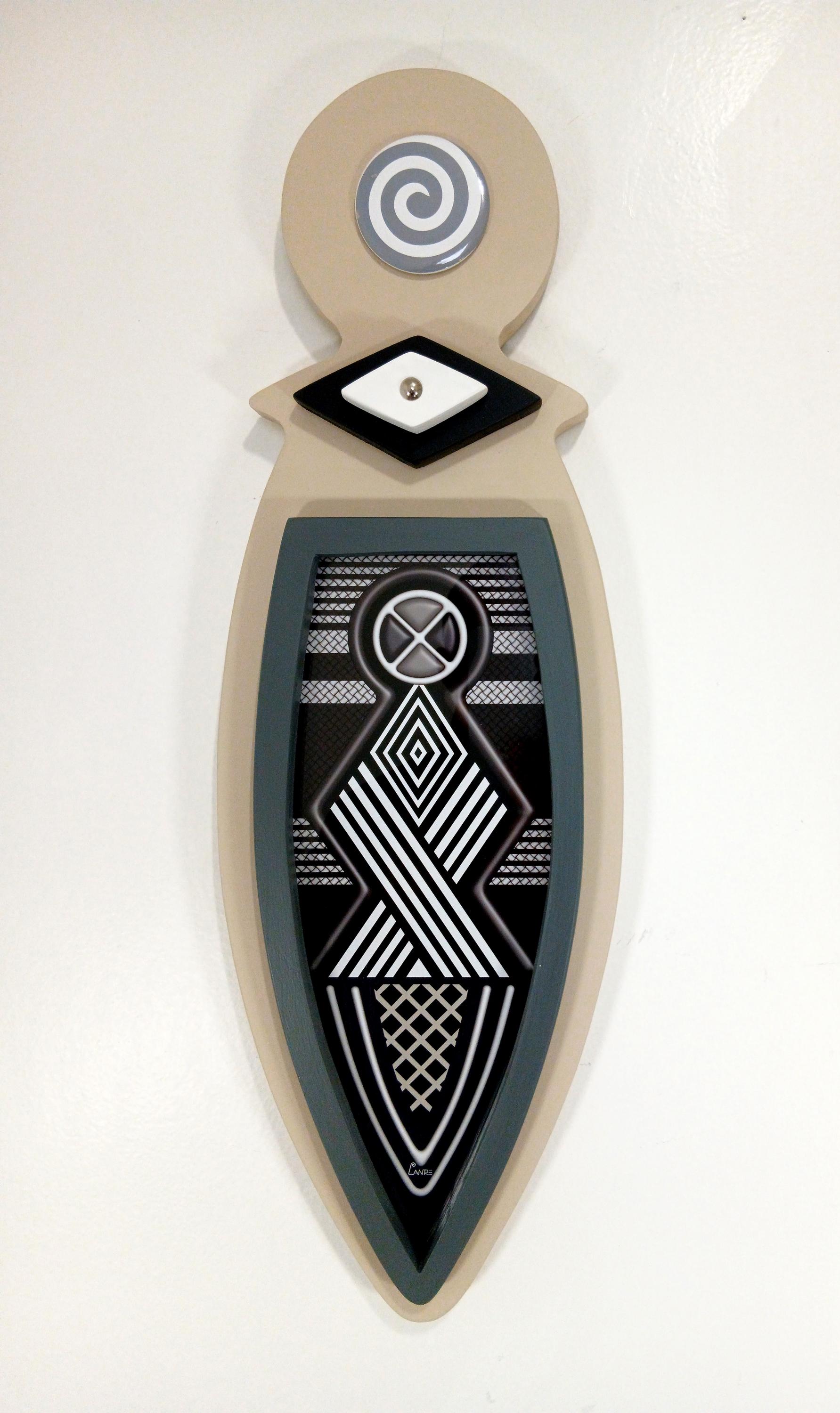 This artwork blends traditional Afrocentric geometry