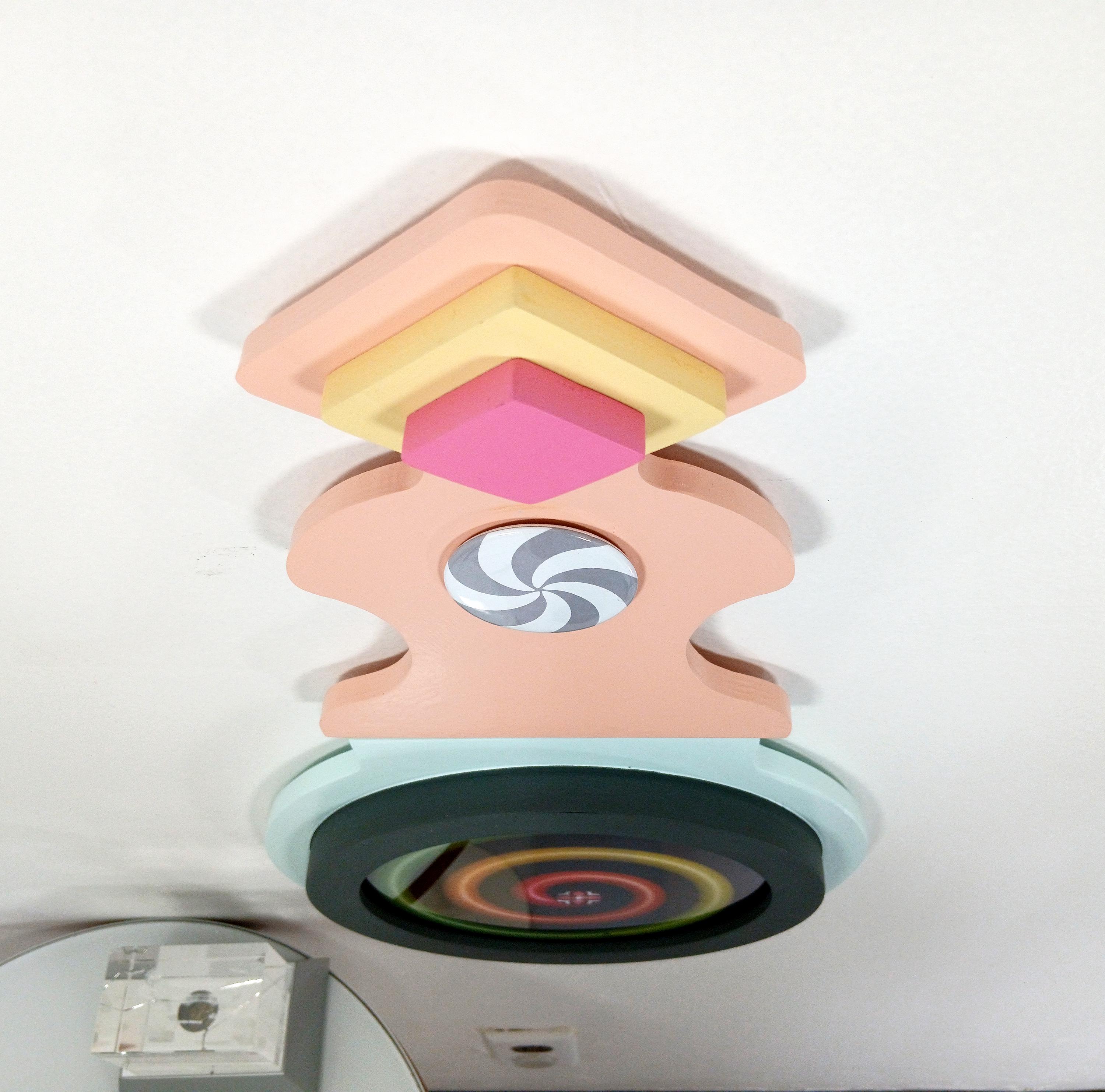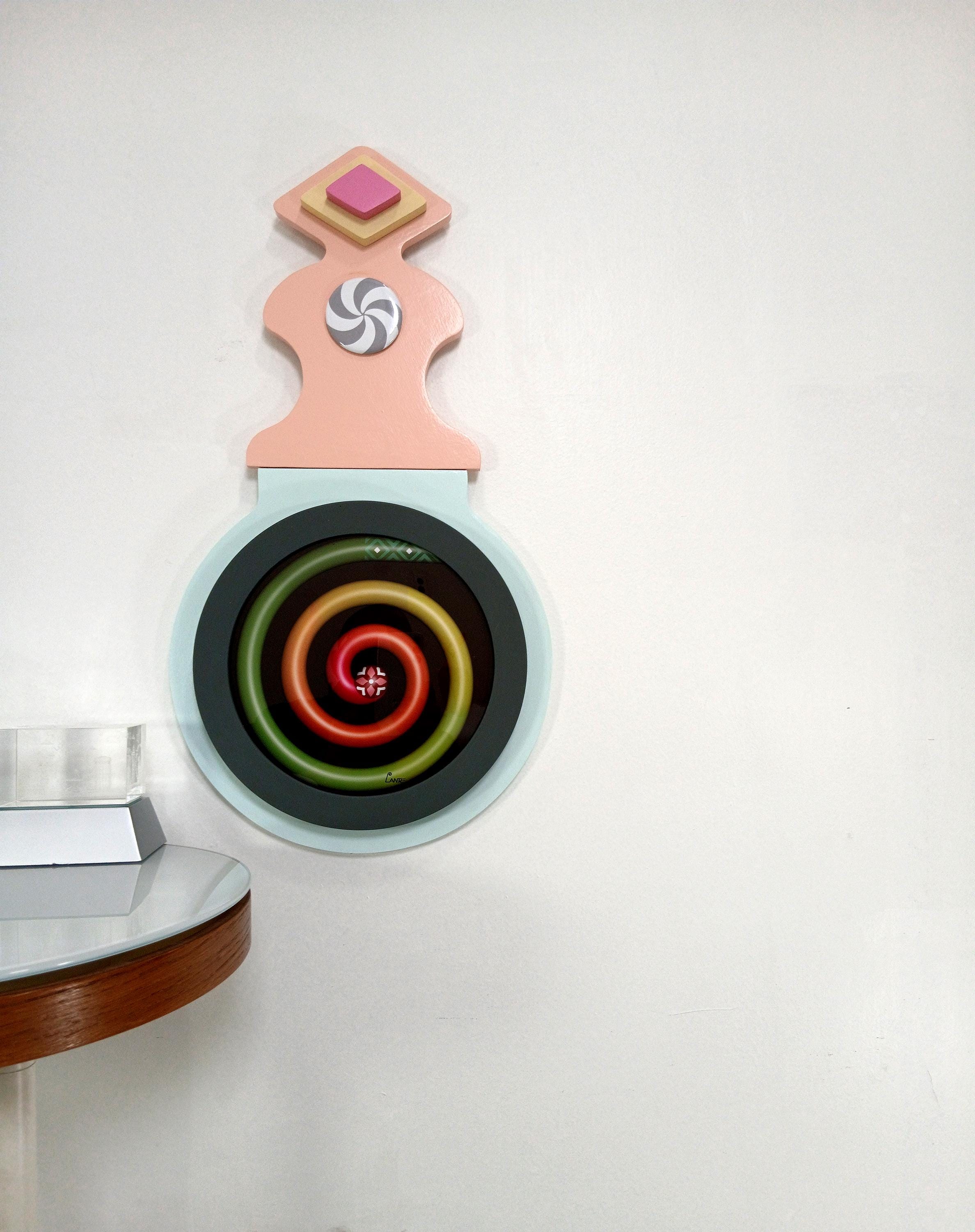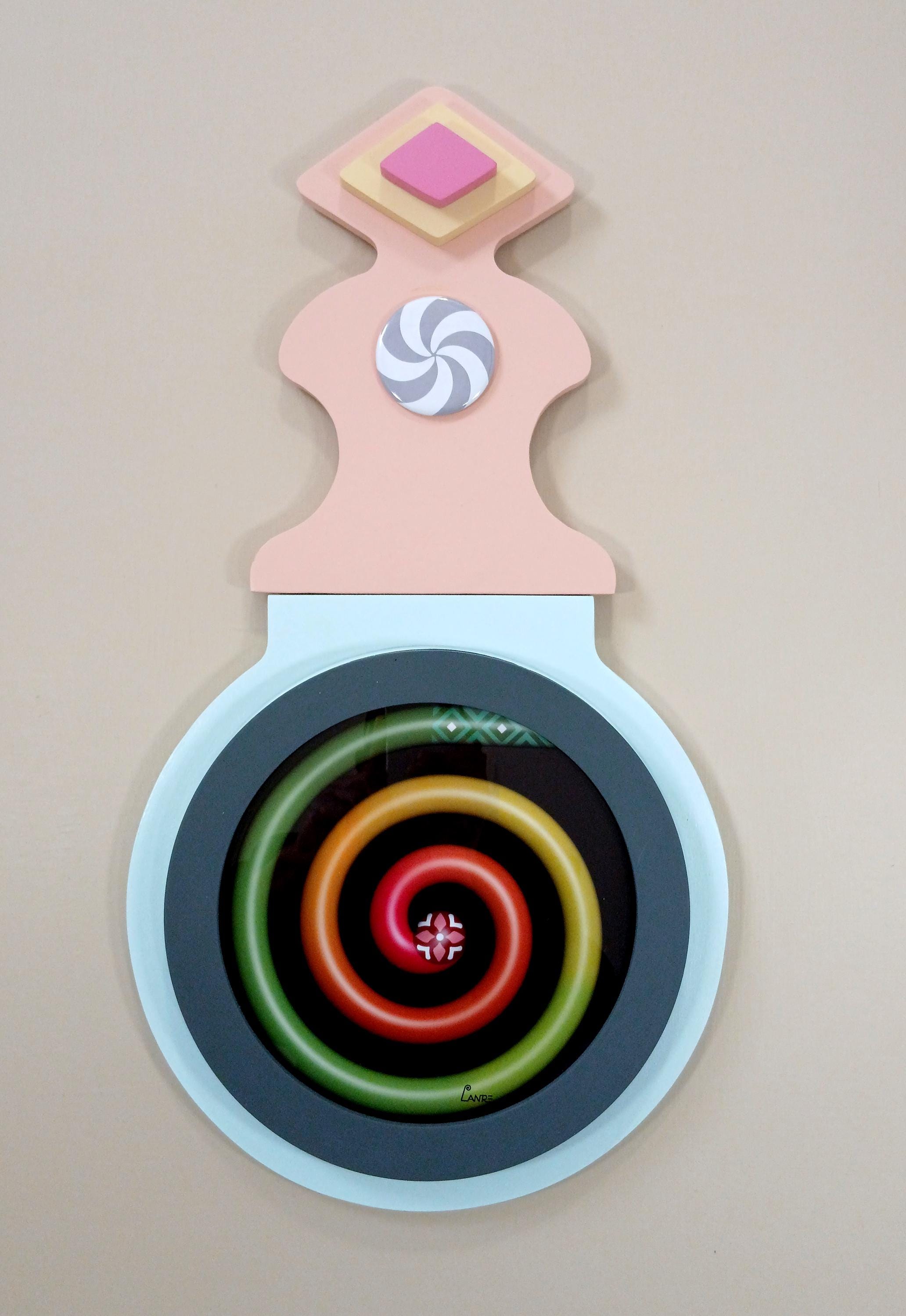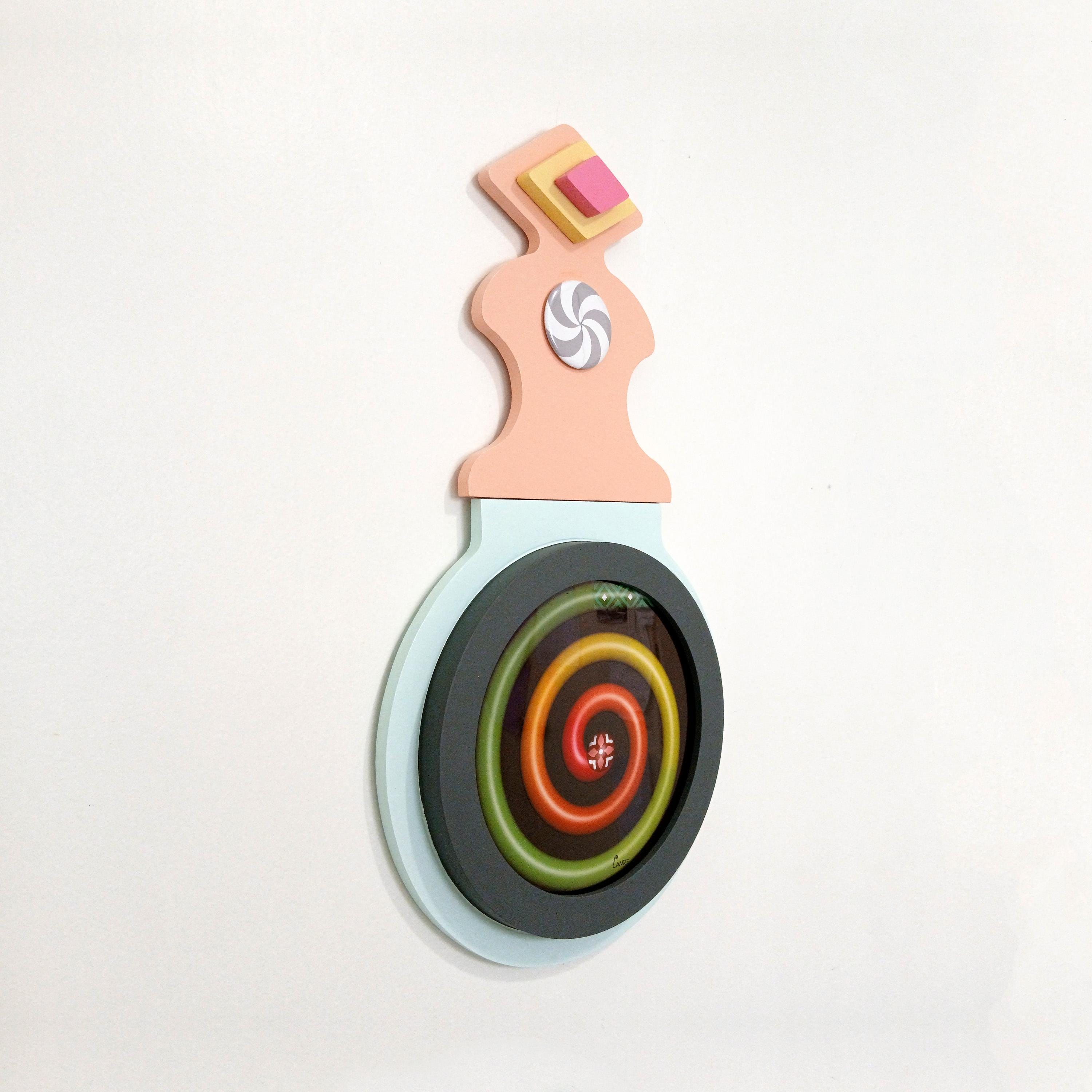 Abstract Cubist Spiral Wall Art: Red to Green Wooden Sculpture