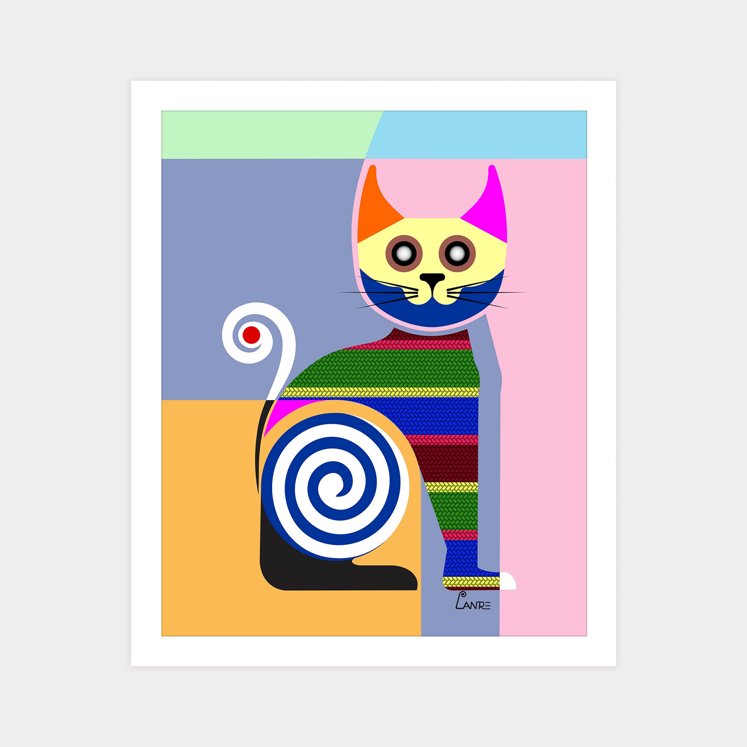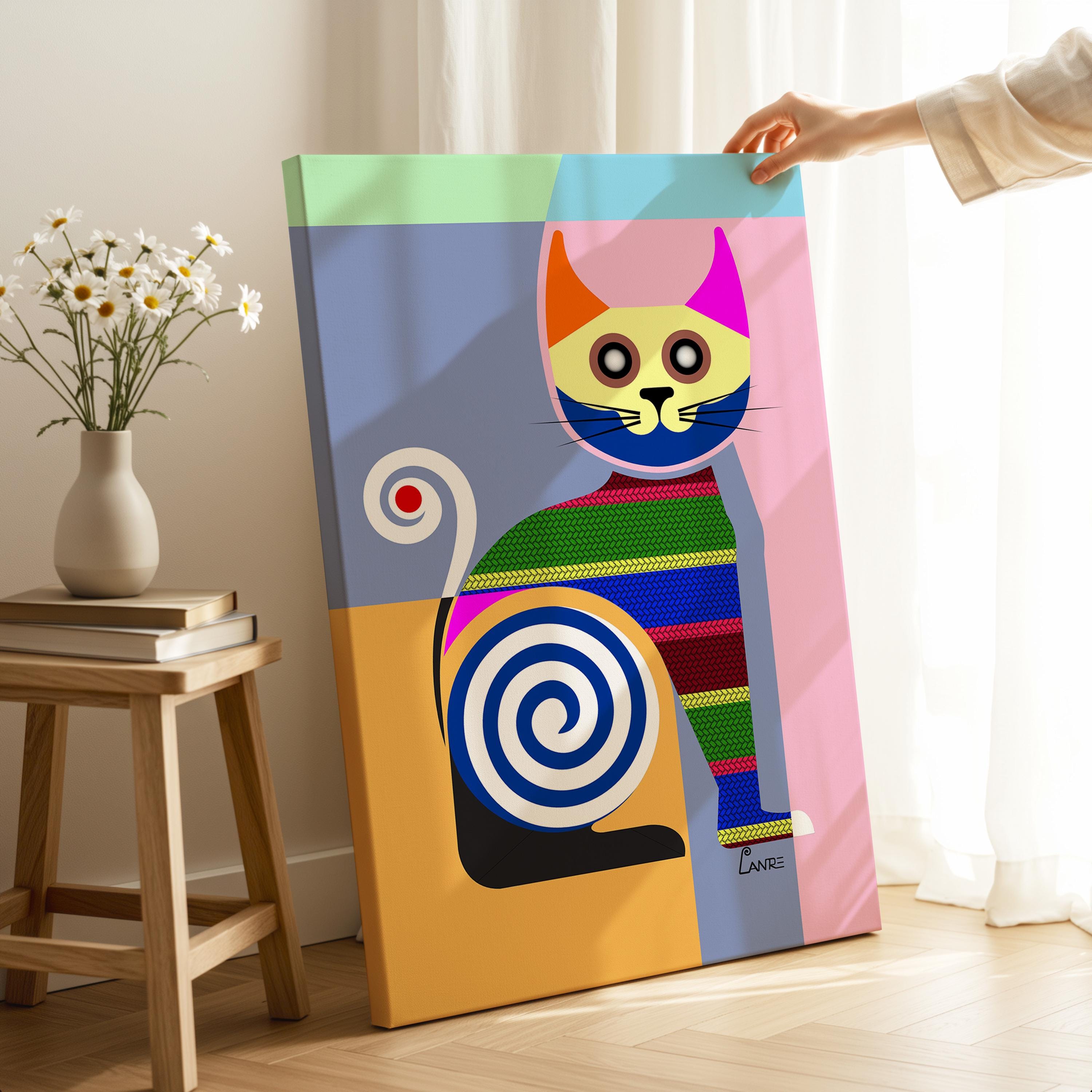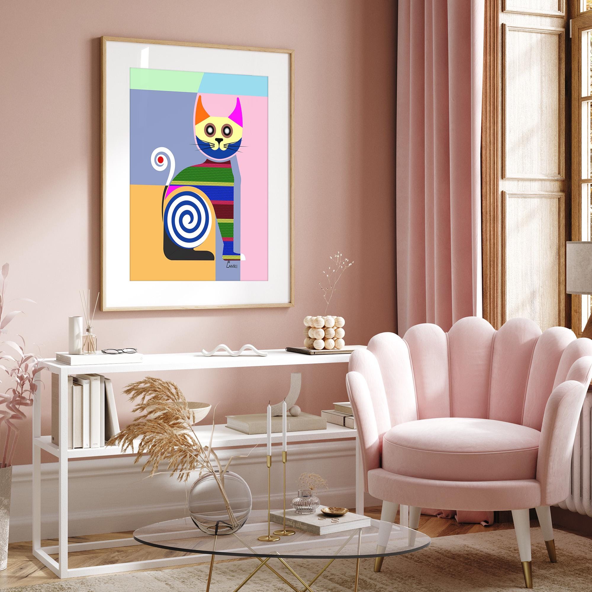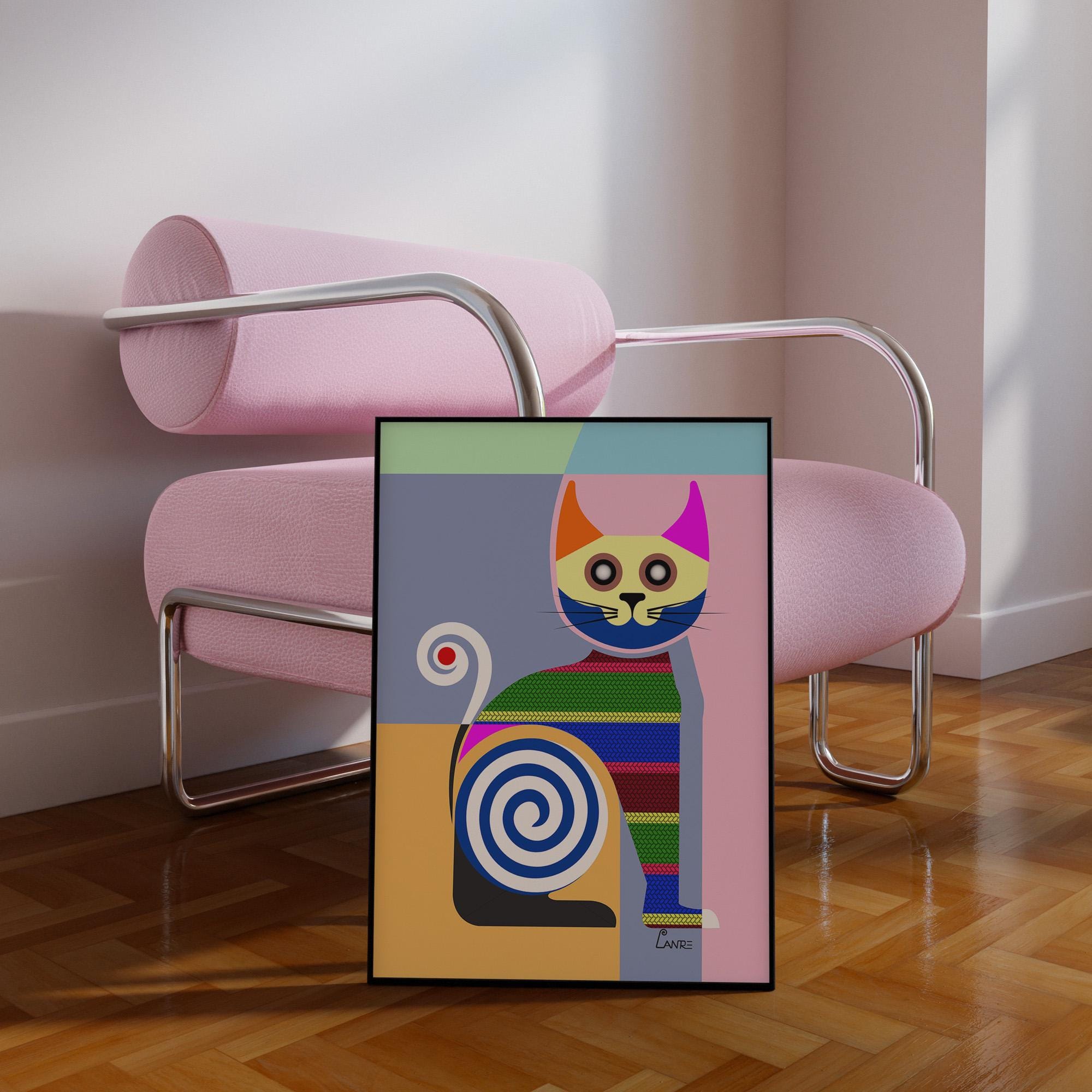 Cat Pop Artwork: Modern Pet Cubist Wall Decor Abstract Animal Art Print